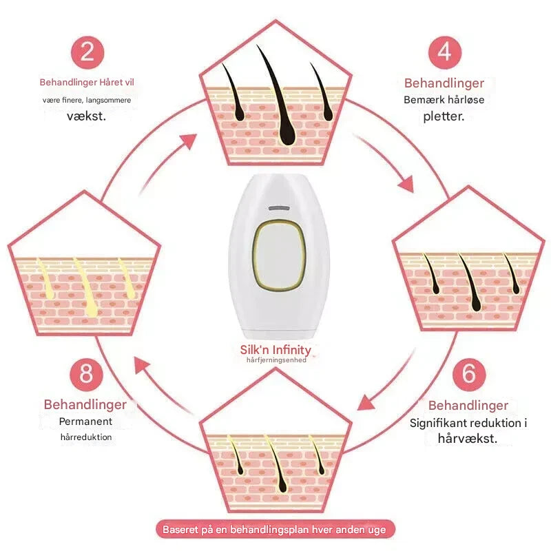 GlowSilk er designet med sensitiv hud i tankerne og tilbyder flere intensitetsniveauer, så du kan tilpasse din behandling for komfort og sikkerhed – selv i sarte områder som bikinilinjen eller ansigtet.