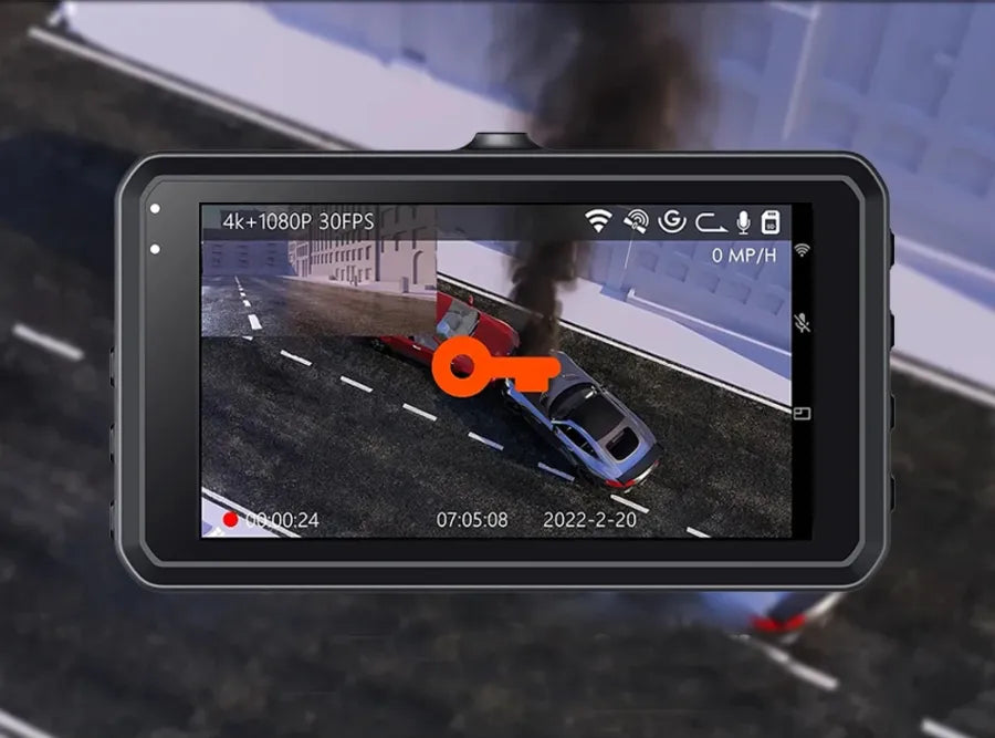 Det indbyggede G-sensor dashcam aktiveres ved sammenstød og optager en præcis nødinspilning af, hvornår og hvor sammenstødet fandt sted, og gemmer filen for at hjælpe med en videre undersøgelse.